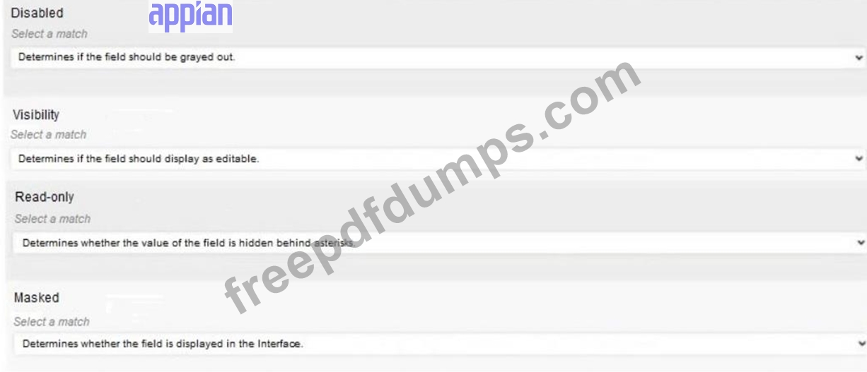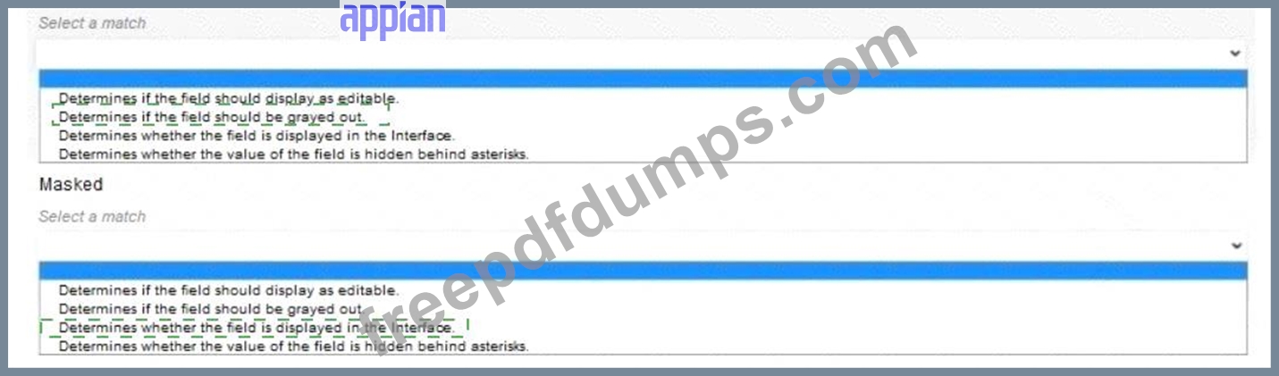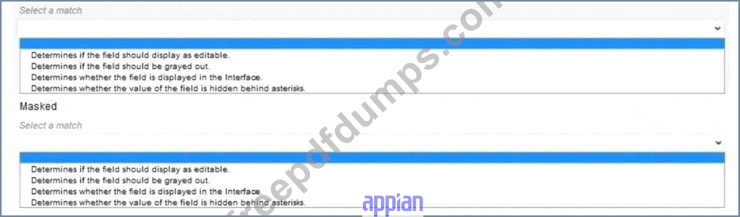 Match the parameters of a text field in an interface with their definition. Each definition will be used once.