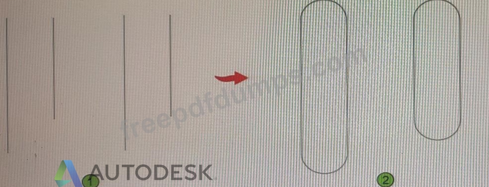 You need to convert the two sets of parallel lines shown in 1 into the objects shown in 2 without repeating the command.