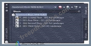 A CAD designer is working with a sheet set (project) The existing sheets (layouts) required are shown in the sheet set (project) in the exhibit.