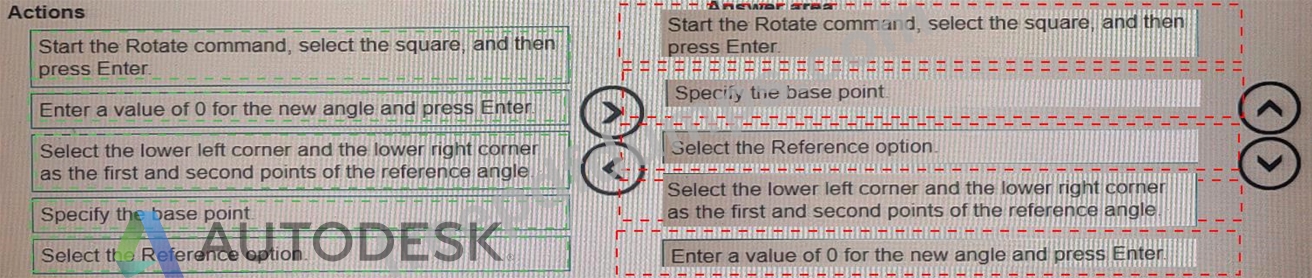 In which order should you perform the actions to rotate square (1) to match the angle of square (2).