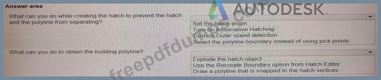 A site plan was recently modified to relocate a building to a new location While relocating the building, only the hatch location of the building was moved by mistake as shown in the exhibit.