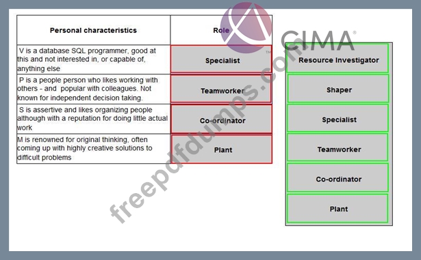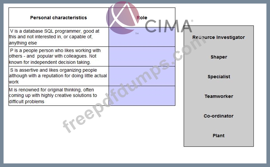 Applying this research, place the correct designated Belbin role label against the relevant personal characteristics.