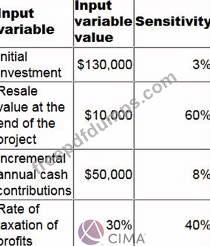 Details of four of the input variables, together with the sensitivity of the viability of the project to a change in each one in isolation, are given below.