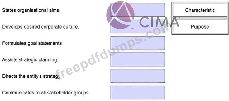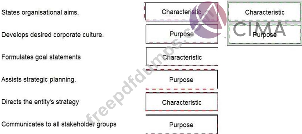 In respect of mission statements, place the word "characteristic" or "purpose" against the relevant activity.