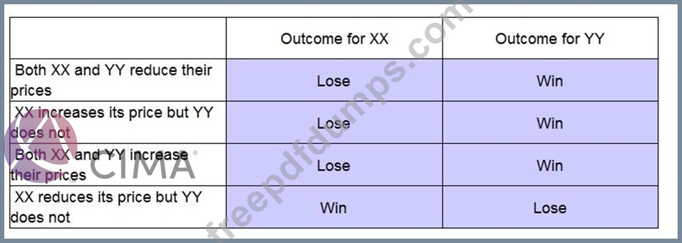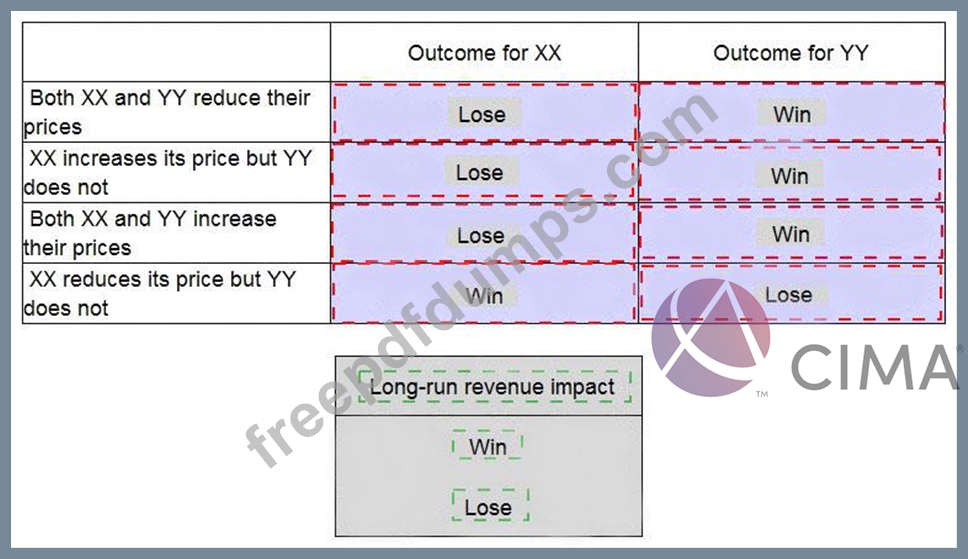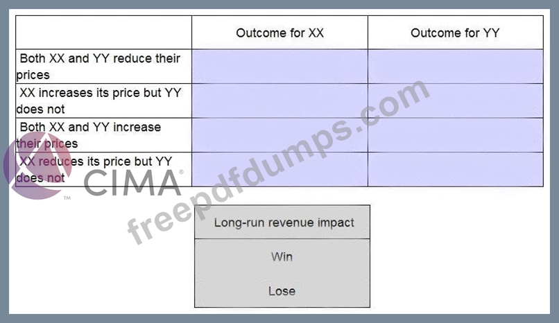 Company XX and Company YY are the only two providers of electricity to Country M. The demand for electricity is price inelastic which means that buyers regard it as essential and therefore demand for electricity does not change significantly if the average price of electricty changes. However customers will switch between suppliers within a year to get cheaper electricity. Using Game Theory place the long-run revenue impact on each firm of each of the following pricing decisions.