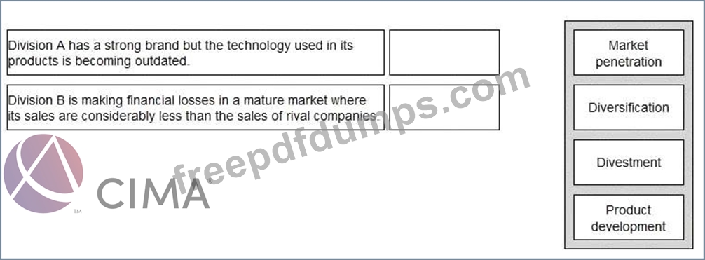 QR is a conglomerate with two divisions, A and B. Given the information below, select the most appropriate strategy for each division to implement.