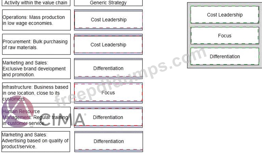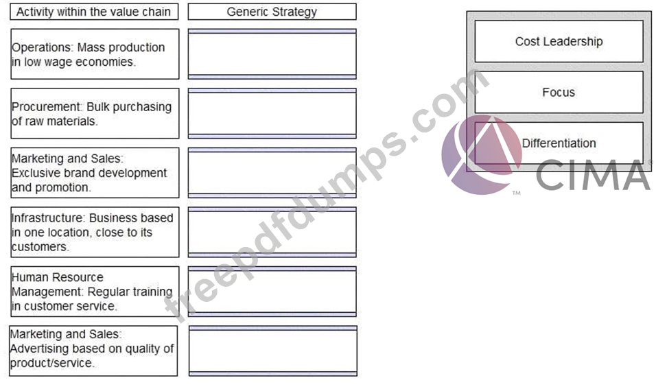 Against each of the activities listed below, select the Generic Strategy which best defines the strategic approach being taken.