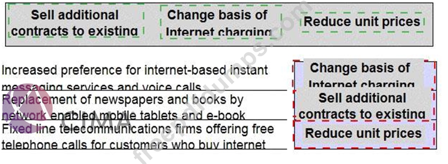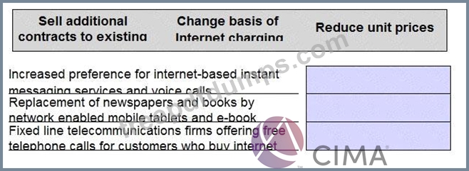 HHH presently offers telephone and text services at a price per unit (a unit is defined as 1 minute or 160 text characters). It provides Internet connection from handsets at a fixed fee per month. Select the appropriate strategic response to each of the industry developments listed below.
