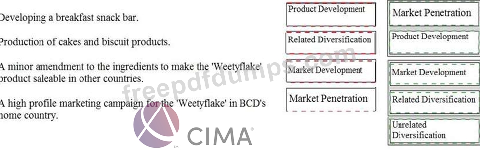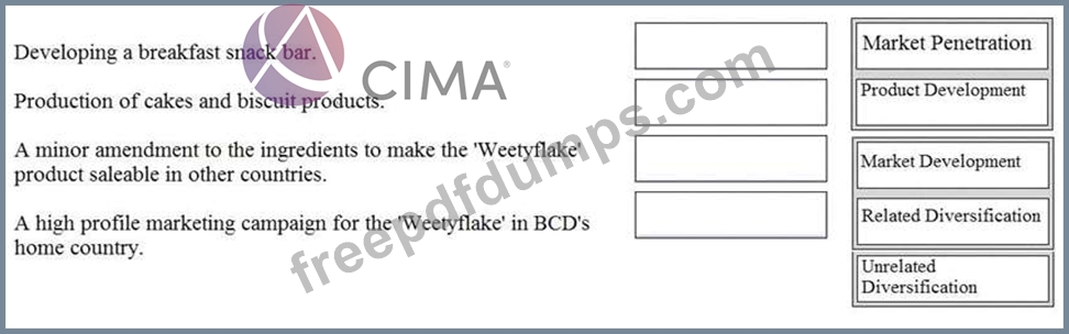 BCD manufactures a well known breakfast cereal, the 'Weetyflake'. As a result of a steady slow down in the market growth of this product in its home country in the last five years, BCD is considering a number of possible strategic directions.