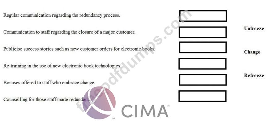 DDD is a company which publishes paper-based books. In the last 10 years DDD has seen a steady decline in its sales. Last month, one of its major customers, a large chain of high street bookshops announced that it would be closing as a result in declining sales in the paper-based book market. The Board of DDD has therefore announced that in order to survive, it must re-focus the business upon the developement of electronic books, which will require a significant investment in new technology and staff training. However, some staff will be made redundant as part of this process. The Board of DDD has stated that it will reward staff who actively embrace the change process.