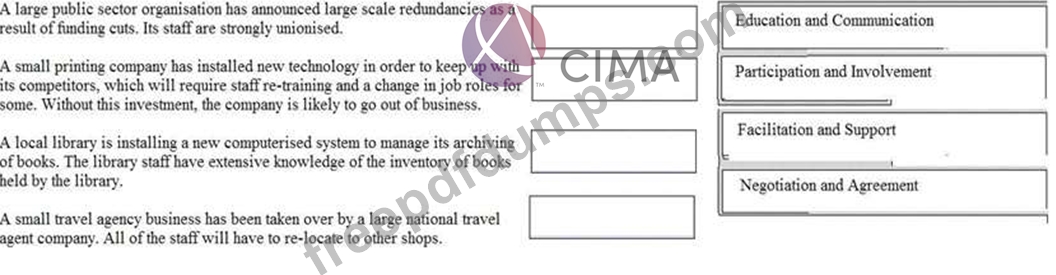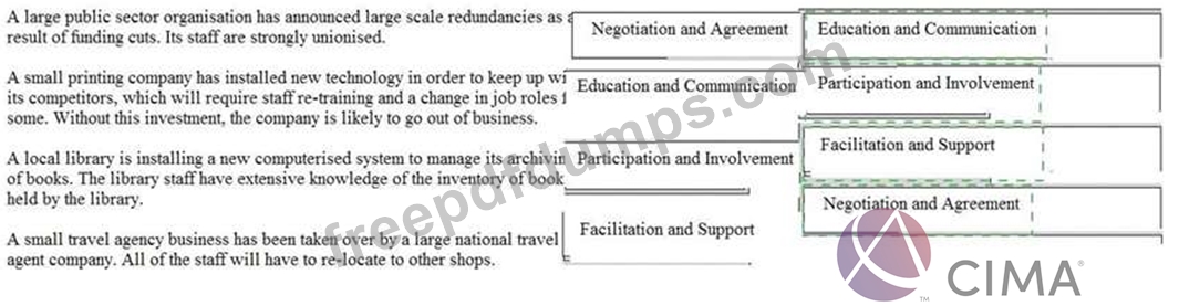 Select the MOST appropriate leadership style to manage each change situation outlined below.