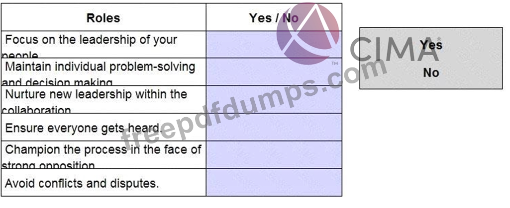 Place 'Yes' or 'No' next to each Role.