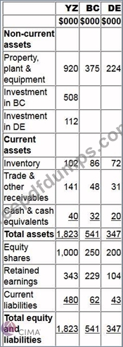 Statements of financial position for YZ, BC and DE at 31 March 20X2 include the following balances: