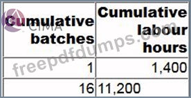 A company has just completed the production of the first 16 batches of a product. A learning curve has been observed throughout. The following table gives further details.