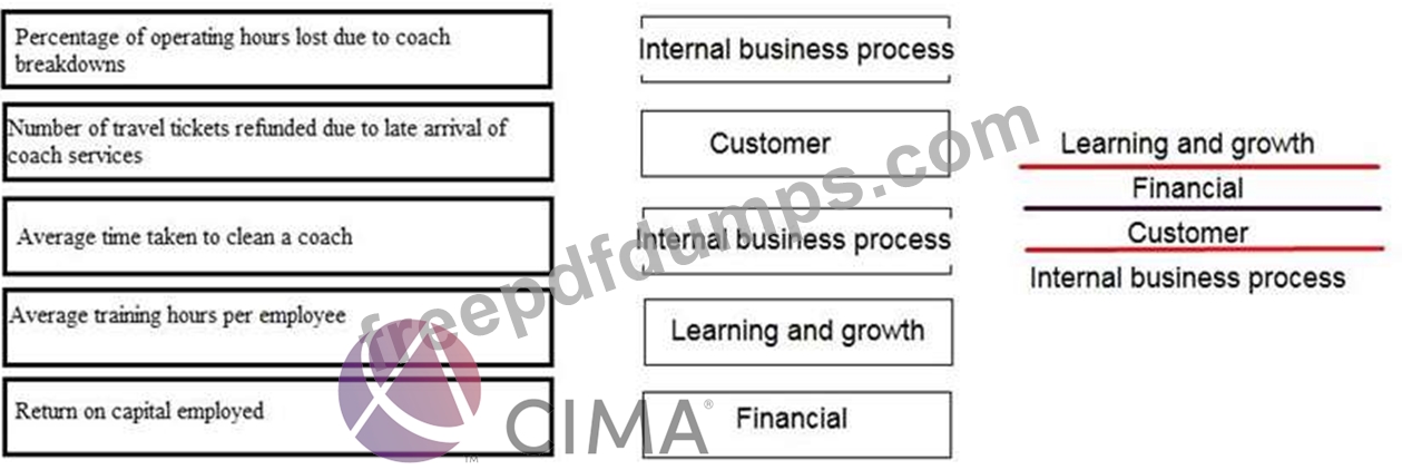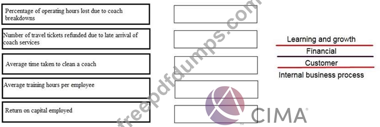 A Balanced Scorecard is being prepared for a coach passenger transport company. Place the correct perspective of the Balanced Scorecard against each performance measure.