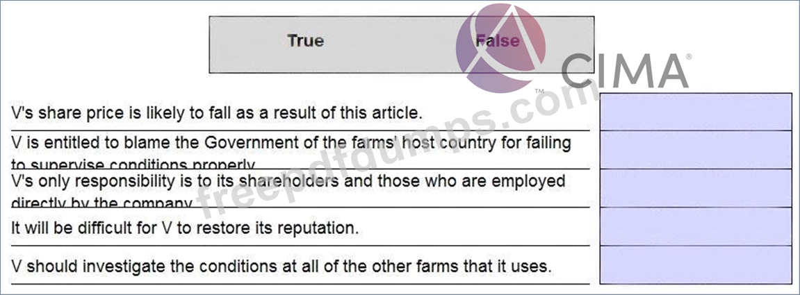 V buys vegetables and fruit from three farms located in a different part of V's country and sells them to large supermarket chains.