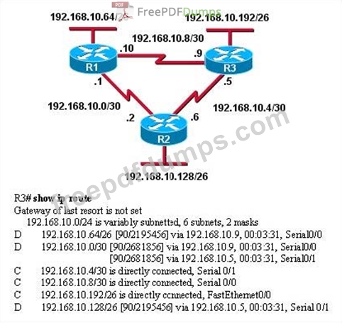 Hosts in network 192.168.2.0 are unable to reach hosts in network 192.168.3.0. Based on the output from RouterA, what are two possible reasons for the failure? (Choose two.)