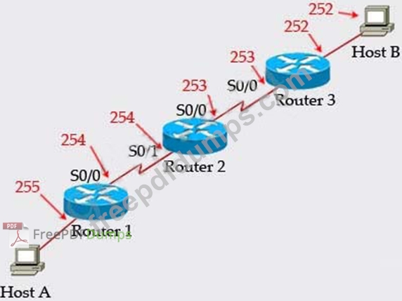 Host A pings interface S0/0 on router 3, what is the TTL value for that ping?