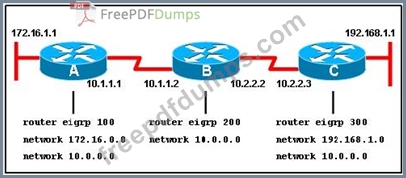 When running EIGRP, what is required for RouterA to exchange routing updates with RouterC?