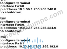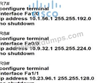 An IP subnet must be configured on each router that provides enough addresses for the number of assigned hosts and anticipates no more than 10% growth for now hosts. Which configuration script must be used?