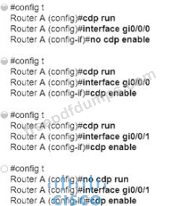 How must router A be configured so that it only sends Cisco Discovery Protocol Information to router C?