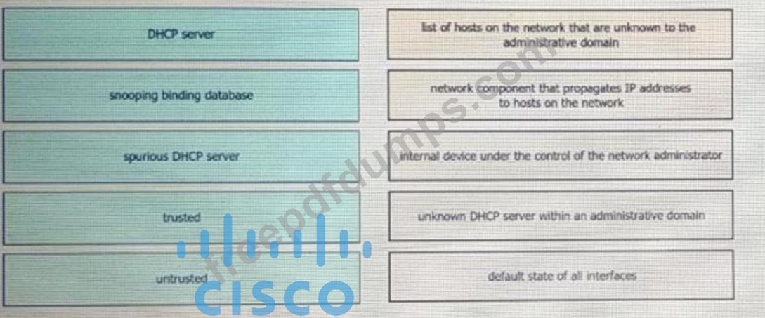 Drag and drop the DHCP snooping terms from the left onto the descriptions on the right.