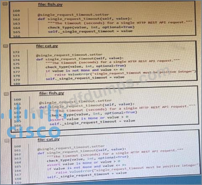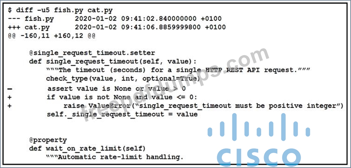 The output of a unified diff when comparing two versions of a python script is shown. Which two "single_request _timeout ()"