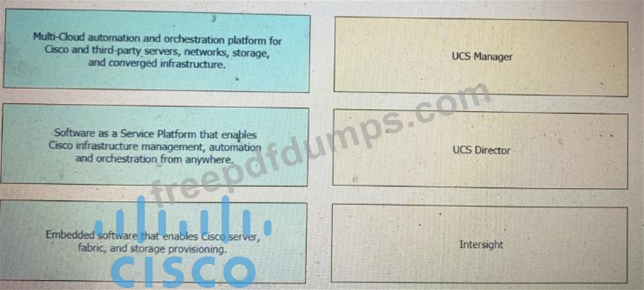 Drag and drop the capability on the left onto the Cisco compute management platform that supports the capability on the right.