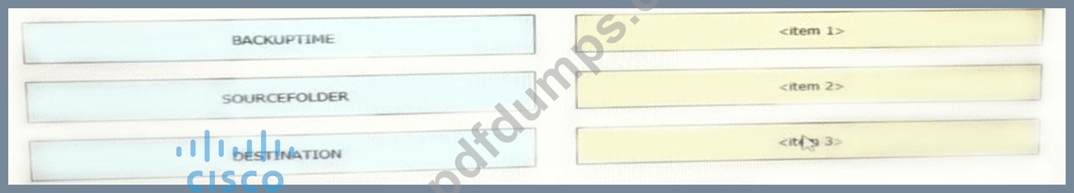 Drag and drop the variables from the left onto the item numbers on the right that match the missing assignments in the exhibit.