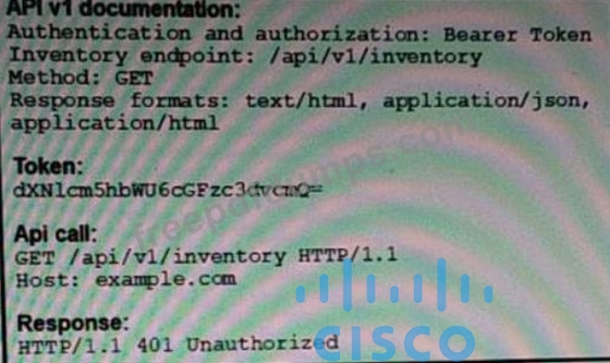 An API call is constructed to retrieve the inventory in XML format by using the API. The response to the call is 401 Unauthorized. Which two headers must be added to the API call? (Choose two.)