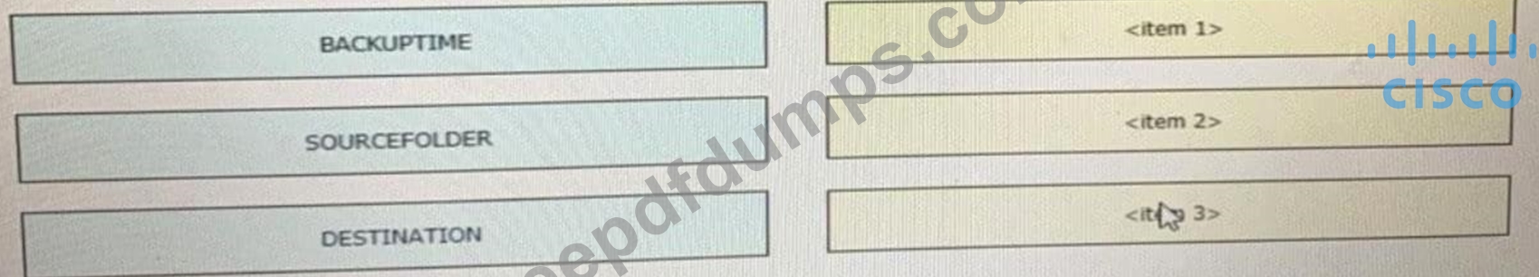 Drag and drop the variables from the left onto the item numbers on the right that match the missing assignments in the exhibit.