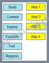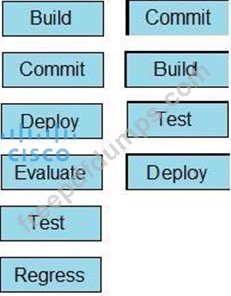 Drag and drop the steps from the left into order on the right to create a common CI/CD pipeline process. Not all options are used.