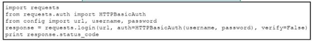 The script returns an output of 401. To use the supplied URL. an HTTP GET request must Be sent with an Authorization header. The header value is a BaseG4 encoded concatenation of the username and password. Which action must be taken to return an output of 200?