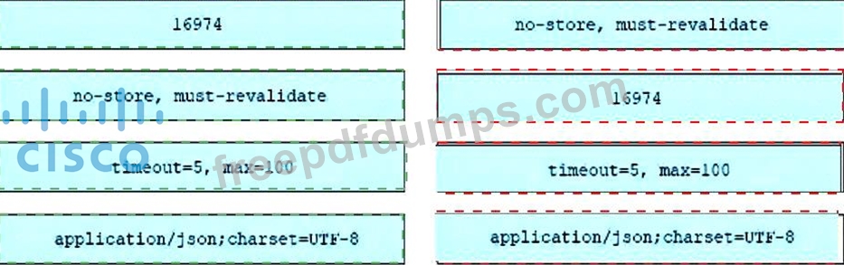 An engineer must make changes on a network device through the management platform API. The engineer prepares a script to send the request and analyze the response, check headers, and read the body according to information inside response headers. Drag and drop the HTTP header values from the left onto the elements of an HTTP response on the right.
