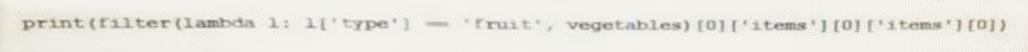 "vegetables" Using python, which output is the result of this command?