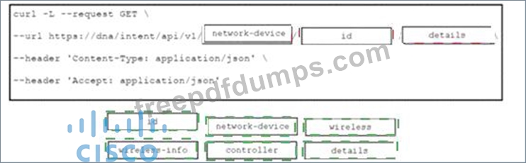 Drag and drop the code from the bottom onto the blanks in the code to construct a cURL command using the Cisco DNA Center API. which will provide the details of a WLAN controller with Id af397748444. Not at options are used.