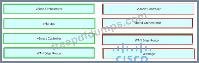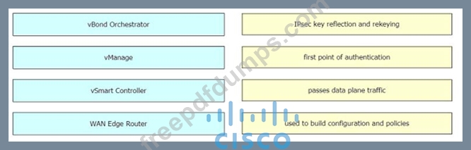 Drag and drop the Cisco SD-WAN components from the left onto their functions on the right.