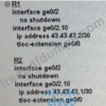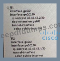 Refer to the exhibit. Which configuration extends the INET interface on R1 to be used by R2 for control and data connections?