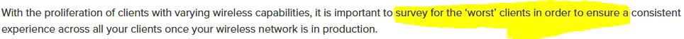 An engineer is designing a wireless network that will support many different types of wireless clients. When conducting the survey, which client must be used to ensure a consistent experience for all of the wireless clients?