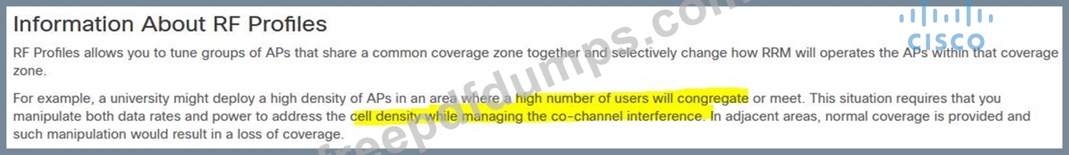 An engineer has deployed a group of APs in an auditorium and notices that the APs are showing high cochannel interference. Which profile can be used to adjust the parameters for these high-density APs?