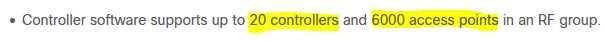 How many WLC and APs in an RF group can the controller software scale up to in WLC release