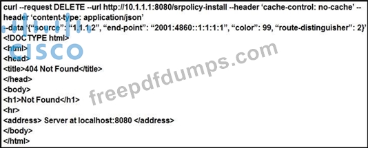 Refer to the exhibit. An engineer implements an automation with Cisco XTC. Which problem results in the 404 Not Found error code on the REST call?