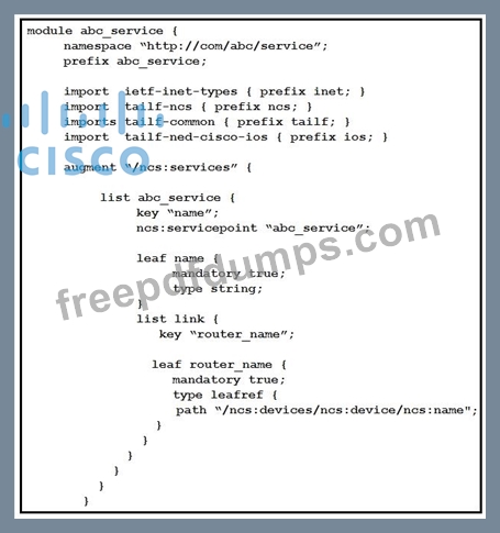 Refer to the exhibit. Based on the YANG presented, what is the correct xpath to retrieve the router named "ios-device" under the "CustomerA" service name?