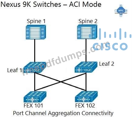 An engineer is implementing a Cisco ACI data center network that includes Cisco Nexus 2000 Series 10G fabric extenders. Which physical topology is supported?