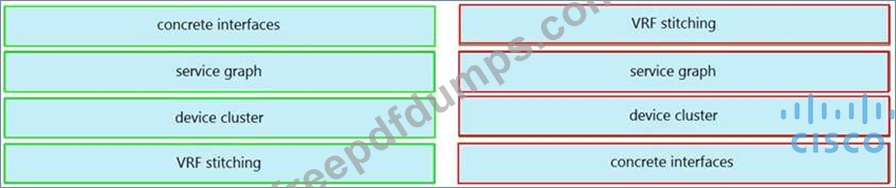 Drag and drop the Cisco ACI Layer 4 to Layer 7 service insertion terms on the left to the correct descriptions on the right.
