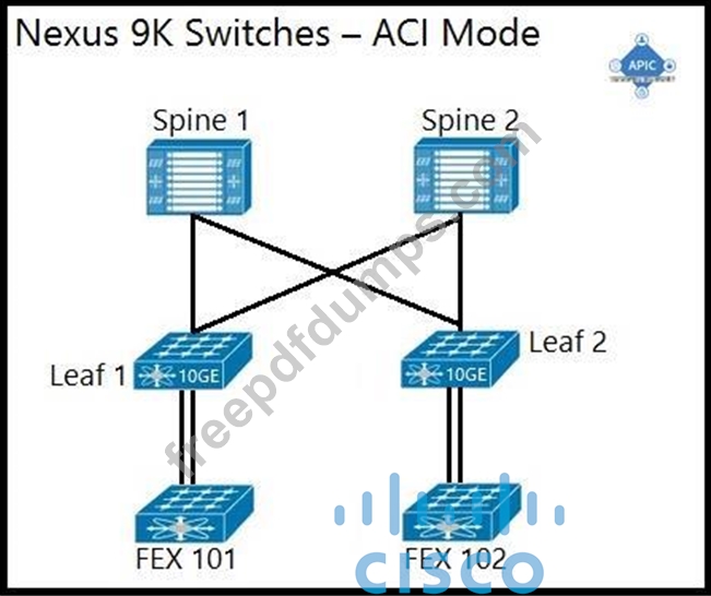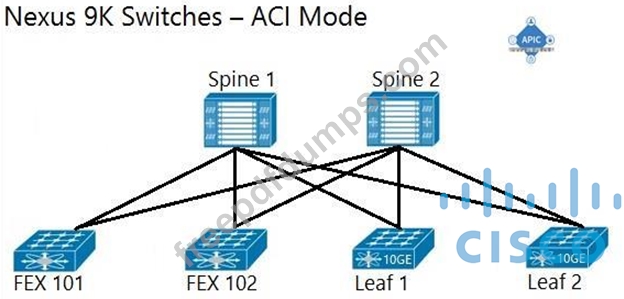 An engineer is implementing a Cisco ACI data center network that includes Cisco Nexus 2000 Series 10G fabric extenders. Which physical topology is supported?