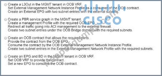 A network engineer must allow secure access to the Cisco ACl out-of-band (OOB) management only from external subnets 10 0 0024 and 192.168 20 G'25. Which configuration set accomplishes this goal?