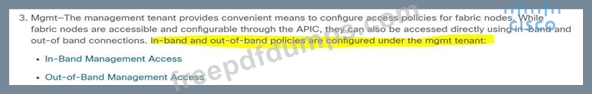 An engineer must limit management access to me Cisco ACI fabric that originates from a single subnet where the NOC operates. Access should be limited to SSH and HTTPS only. Where should the policy be configured on the Cisco APIC to meet the requirements?
