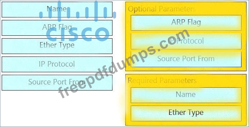 Drag and drop the Cisco ACI filter entry options from the left onto the correct categories on the right indicating what are required or optional parameters.