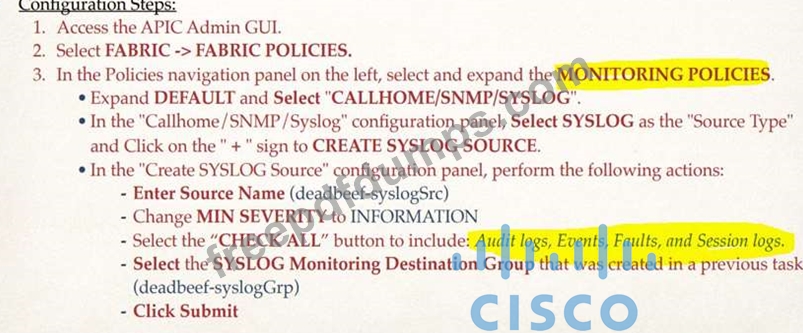 An engineer wants to monitor all configuration changes, threshold crossing, and link-state transitions in a Cisco ACI fabric. Which action must be taken to receive the required messages?